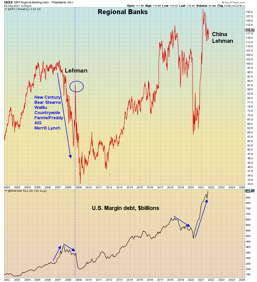 Likewise, the Fed this week warned that QE "tapering" is coming at their next meeting which is a mere five weeks away. Deja vu of September 2008, they were more concerned about "inflation" than the dominoes already falling in China. There was not one mention of Evergrande or contagion.