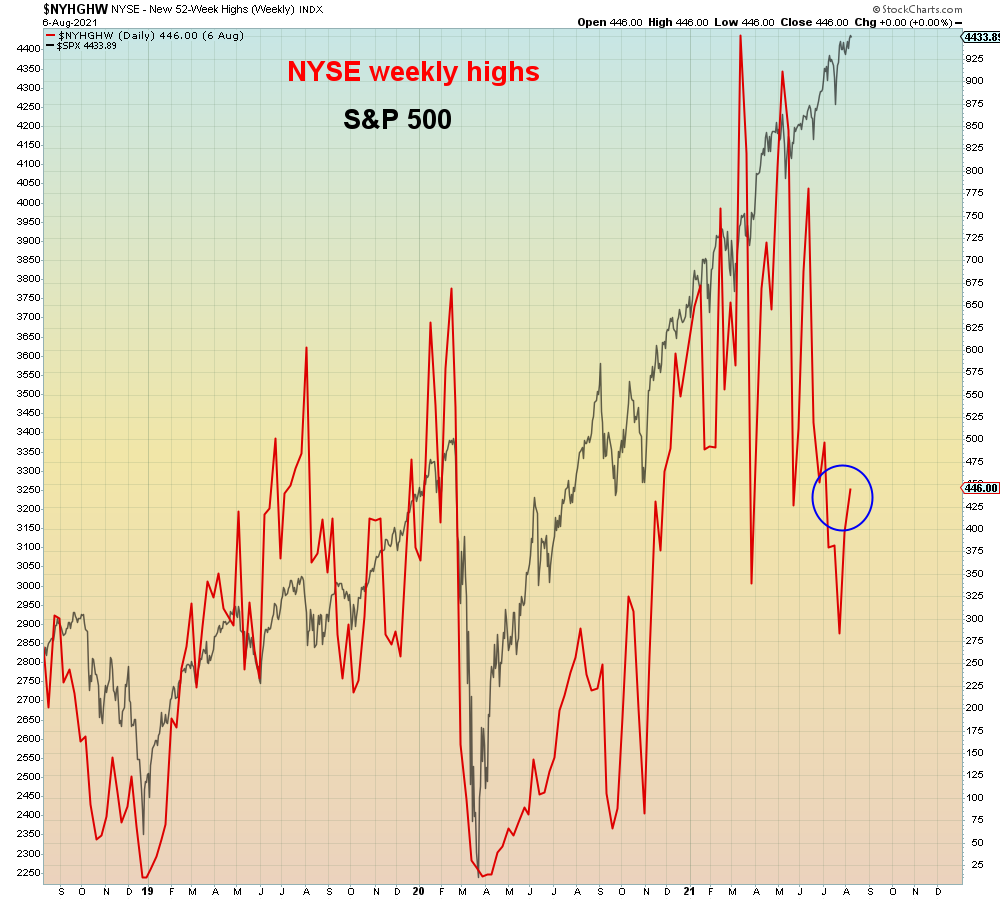 Below we see the number of stocks (not) confirming last week's all time high in the major averages.