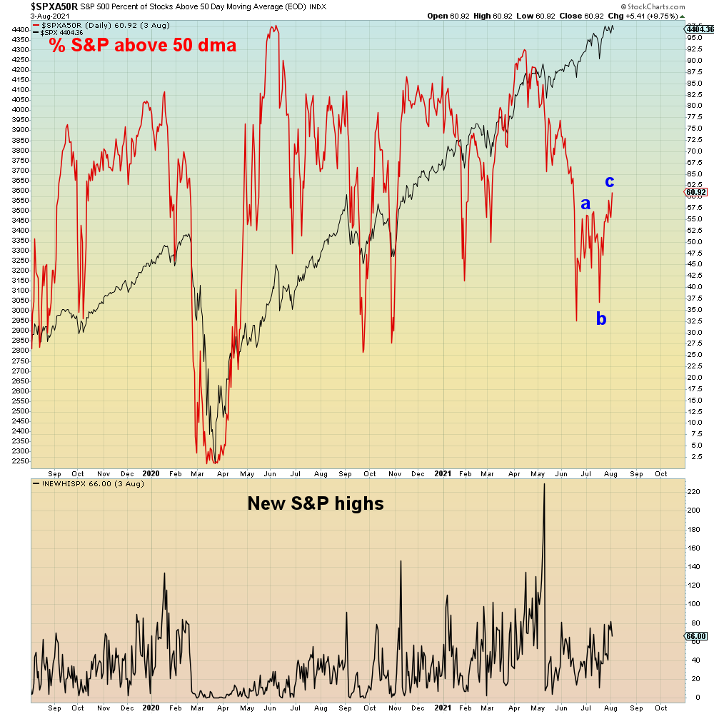 Semis are leading this latest Tech melt-up. The Rydex ratio (lower pane) keeps making new highs indicating a manic reach for risk: