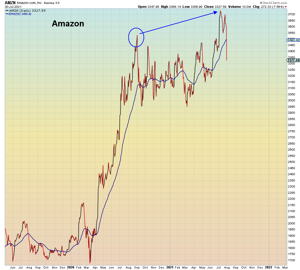 The story that did make headlines on Friday was the very rare Amazon revenue miss. Here we see the last time Amazon/Tech imploded was last summer post Fed Jackson Hole meeting.