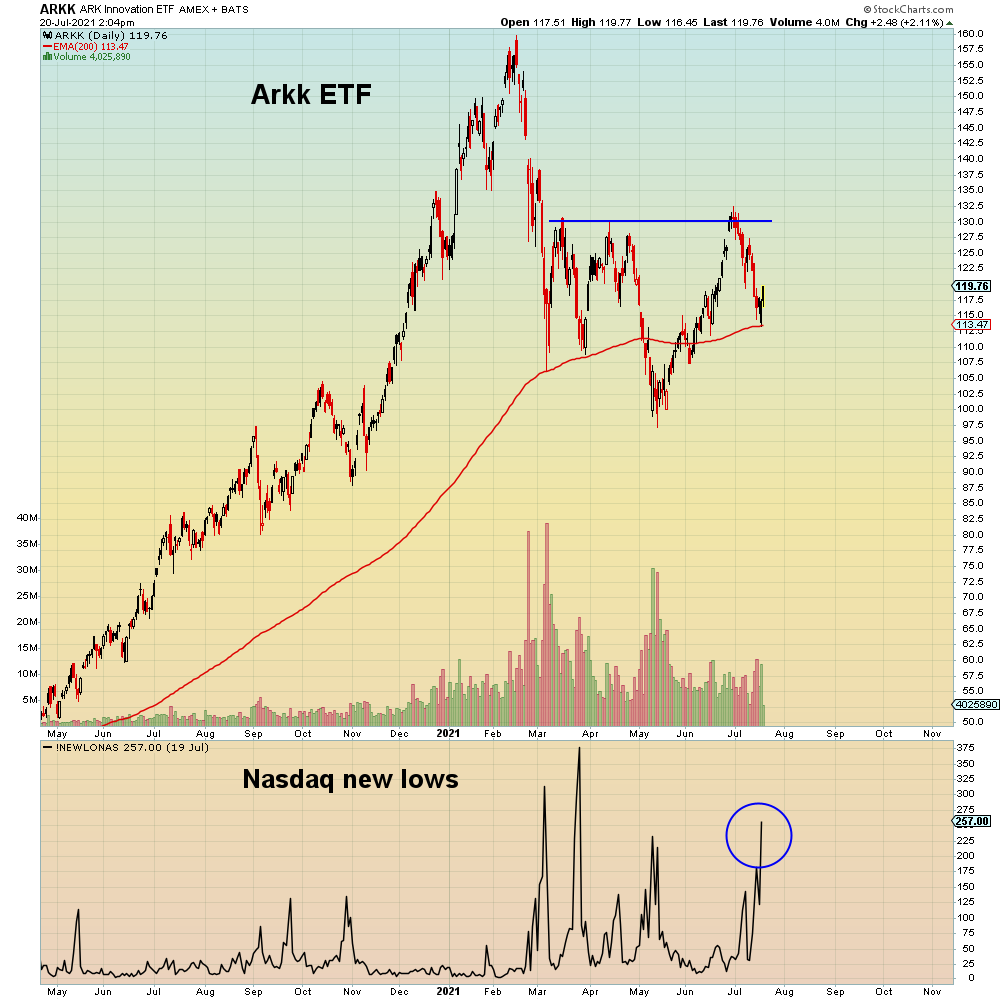 Which gets us to where things stand right now in the casino. As I write on Tuesday, bulls are staging a miraculous comeback from yesterday's gap 'n crap. As I wrote on Twitter, the algos are doing everything possible to defend the 50 day moving average. However, we are seeing signs of hedge fund liquidation as the massively crowded reflation trade gets unwound and at the same time the ultra-shorted Ark ETF pair trade gets bought. Meaning hedge funds are taking down their total exposure.